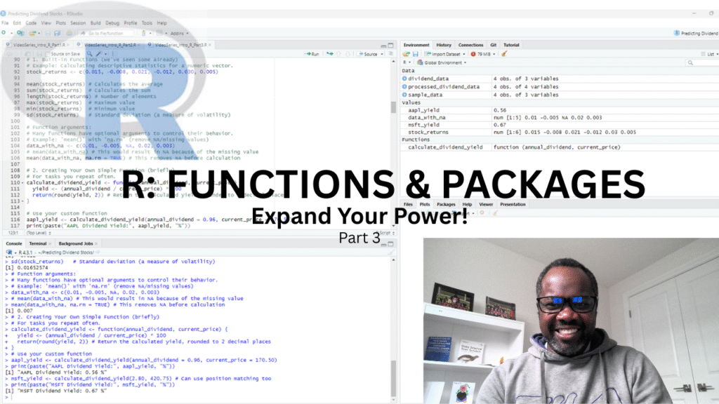 Congratulations on making it to the final video of our “Introduction to R Programming” series! You’ve come so far, from setting up R to mastering data structures, handling files, and using functions. Now, it’s time for one of the most crucial steps in any data project: Basic Data Exploration. In Part 3 of our R […]